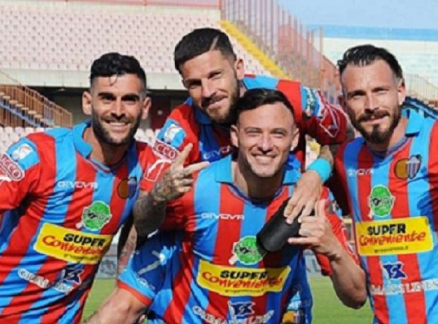(foto Filippo Galtieri, tratta dal sito Calcio Catania, esultanza di Di Piazza e Russotto dopo la vittoria col Potenza)