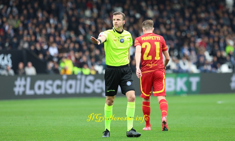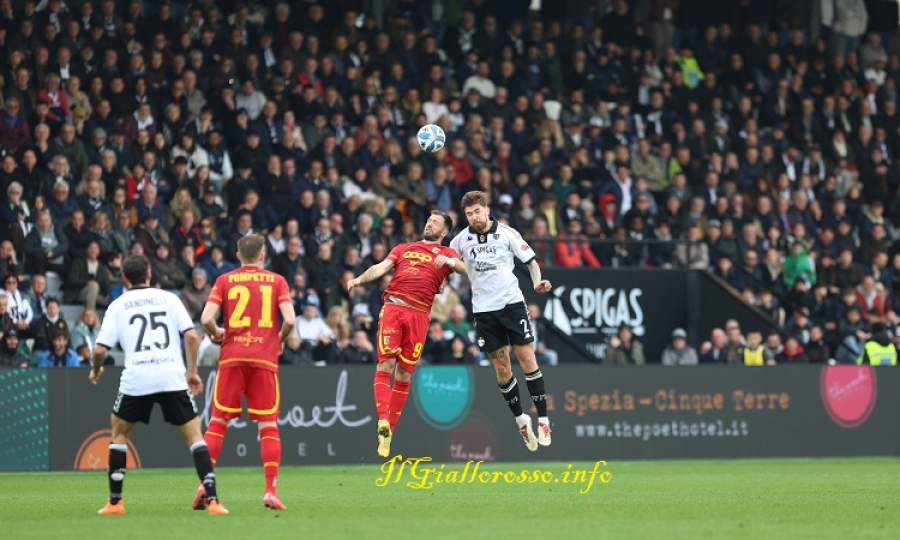Primo tempo di grande ritmo ma con poche occasioni. Al 12’ Pio Esposito cade in area l’arbitro indica il dischetto ma poi il VAR lo richiama e annulla tutto per simulazione dell’attaccante scuola Inter, che viene anche ammonito. La partita si gioca molto più a centrocampo, ci sono tanti duelli al 38’Pompetti spreca una grande chance calciando alto sopra la traversa da posizione ottimale. Seconda frazione che si apre con una tripla occasione dei padroni di casa al 54’ Esposito colpisce di testa, salva Pigliacelli grazie anche all’aiuto del palo, sulla respinta Aurelio si divora il gol. Ancora Pigliacelli, poco dopo salva su Lapadula, subentrato. L’ex Cagliari al 67’ viene espulso da La Penna (in foto) richiamato dal VAR per un piede troppo alto sulla caviglia di Petriccione. Il gol che vale tre punti per la squadra di Caserta arriva al 75’con una girata da bomber consumato di Pittarello in area di rigore, il primo stagionale. L’assedio dello Spezia non basta per pareggiare. Espulso anche Quagliata nel recupero.