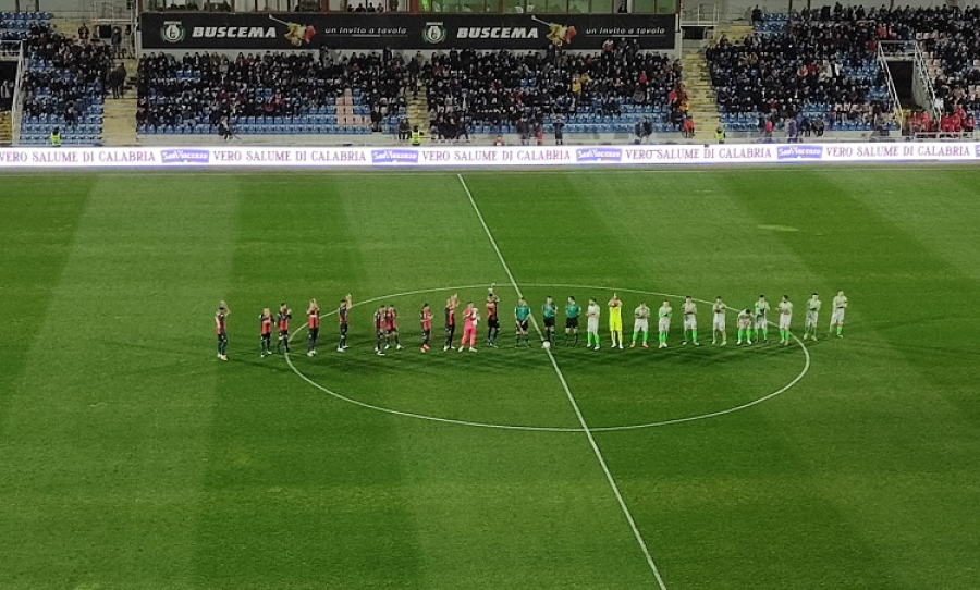 Mister Vivarini si affida alla squadra più collaudata , con il rientrante capitan Martinelli squadra al completo, divisa speciale "solidale" come da presentazione, per le vittime del naufragio. Clima sugli spalti non particolarmente acceso, sicuramente le l'assenza dei tifosi giallorossi e soprattutto quanto accaduto di recente nella vicina Steccato di Cutro, ha influito decisamente sull'entusiasmo verso la gara. Parte forte il Crotone che ci prova prima con D'Errico da buona posizione in area di rigore, poi con Perriccione dalla distanza. Atteggiamento molto aggressivo dei padroni di casa in questi primi minuti. Al quarto d'ora di gioco il Catanzaro conquista una sfilza di angoli consecutivi, ben 5, battuti tutti da Vandeputte sul primo palo, la difesa rossoblu si salva. Ancora il belga dalla distanza, palla fuori. Al 20' grande occasione Sui piedi di Biasci che tenta la conclusione all'incrocio, palla però alta. Risponde D'Errico con una conclusione pericolosa dalla distanza, palla in angolo. Partita che sale d'intensità, contropiede perfetto del Catanzaro, tiro da fuori di Biasci , Dini si supera deviando in angolo, sugli sviluppi testa di Brighenti, palla di un soffio fuori. Ci prova anche Iemmello, tiro però telefonato. Al 38' gol annullato a Tribuzi, segna di testa sul solito cross di Chiricò, ma in posizione di netto fuorigioco. Squadre nel finale incredibilmente allungate, continui capovolgimenti di fronte, ma le difese si salvano. Finisce in parità il primo tempo, risultato giusto per quanto visto in campo finora.