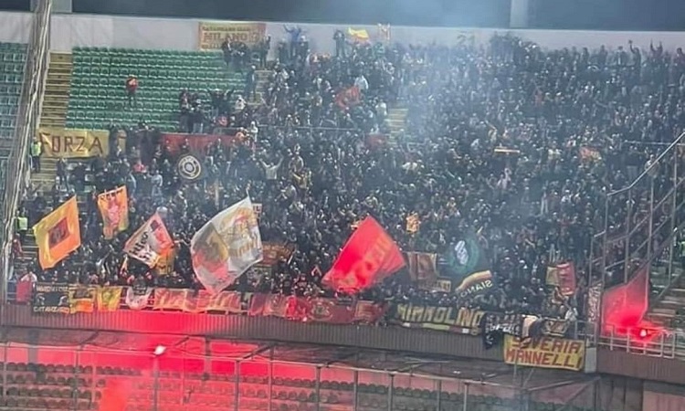 Squadra che vince non si cambia, così mister Vivarini sulle ali dell'entusiasmo del derby vinto, si presenta al "Barbera" con la stessa formazione di domenica, il convincente Pompetti si riprende il centrocampo. Partenza sprint del Catanzaro che costruisce nel primo quarto d'ora due occasioni da rete, la prima è sui piedi Biasci grazie ad un preciso taglio in area di Ghion, la conclusione però è preda di Pigliacelli. La seconda più clamorosa, azione simile al gol del vantaggio col Cosenza un preciso taglio questa volta di Sonas per il connazionale Katzeris che brucia sullo scatto l'avversario e tira quasi a colpo sicuro ma Pigliacelli si salva in angolo, con Biasci e Iemmello ben posizionati al centro in area di rigore. Un Palermo nella prima mezzora deludente, mugugna il pubblico del "Barbera", mentre i 1000 tifosi giallorossi (in foto) si fanno sentire. Al 25' la prima conclusione del Palermo con Mancuso, attento Fulignati blocca a terra. Al 43' IEMMELLO fa impazzire la curva giallorossa: controllo in area di rigore e più lesto di tutti fulmina il portiere rosanero e porta in vantaggio il Catanzaro. Tifosi di casa prevedibilmente delusi accompagnano con i fischi la propria squadra negli spogliatoi.